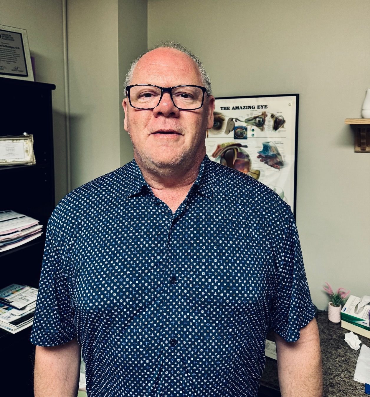 Scot has been with Eye Site Optical for over 35 years. He has been a licensed Optician for over 30 years, and he is our Office Manager. He can custom make personal shaped and colored eyeglasses for you. He really truly cares about the needs of his patients and it shows.
